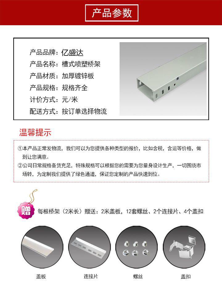 聯(lián)系人:杜經(jīng)理 座機(jī):0631-5982229 聯(lián)系方式:13176305866(橋架) 15698215066(電工套管) 地址:威海市環(huán)翠區(qū)西山口工業(yè)園